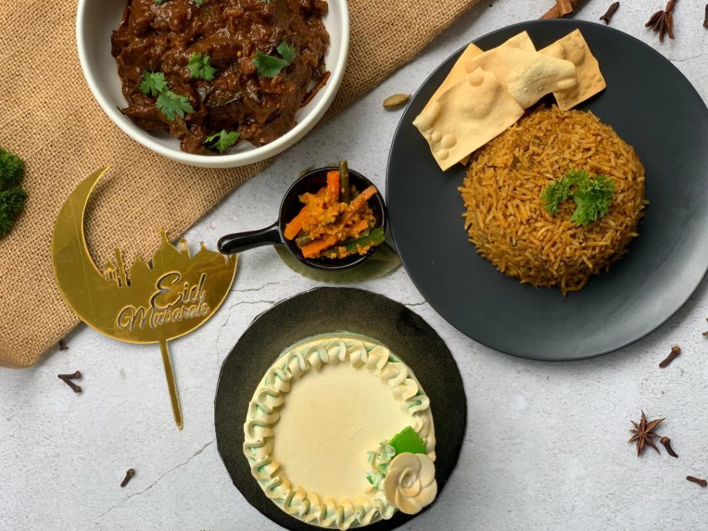 SET A – Hyderabadi Briyani. Slow cooked, dum pukht style spiced basmathi rice served with spicy Chicken Vindaloo, Special Acar Nyoya, Chutney and Papadam.